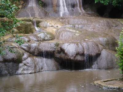 About half an hour later, I reached the park gate and the ranger informed me that there was blood gushing out of my arm. I thought it strange that this had not occurred to me before but decided to turn it to my advantage; I played the “crashed my motorbike and have to spend all my money on repairs" card and managed to get a 50% student discount on the exorbitant ($5) entry fee. The park consisted of 7 tiers of a waterfall spread out over about a mile; due to the heavy rains, the falls were fairly amazing, but there was also a less spectacular series of cascades where the footpath used to be and hiking to the top was quite epic. After the third cascade there was a ranger station where guards stopped you and searched through your bags for any pieces of plastic; for each piece you were forced to leave a 10Bt deposit that would be refunded if you didn't throw it in the river. The girl who took my money used this as an opportunity to make a pass at me: “You are very handsome; I like you" – I went with the standard smile and nod, hoping not to endanger the return of my 25 cents. I have been told on many occasions that Thais are shy people, but this is simply not the case – on a daily basis, women make terrifically forward remarks to me – and not just the prostitutes, but also teachers, students and shop owners – I've decided I rather enjoy this behavior and wish it would be adapted in more countries I visit.