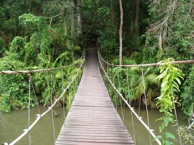 Venturing through the jungle, I heard the screams of a few dozen gibbons, as well as the sounds of hornbills and various other birds, and the occasional gurgling of some large carnivore's digestive tract. I never actually saw much of anything besides a small green snake and something resembling a bush baby; a few hundred spiders crawled across my head at one time or another, and plenty of malarial mosquitoes made their presence known.