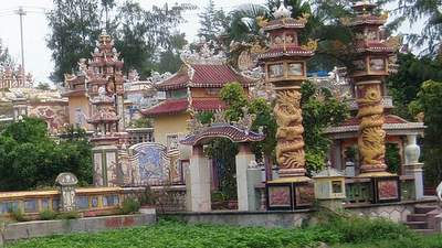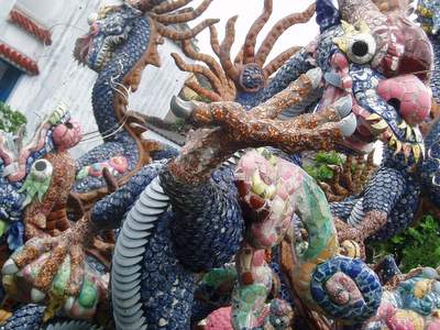 Coming from Thailand, I had been disappointed up til now with the apparent lack of elaborate temples, but on this island there was an elaborate pagoda quite literally every five to ten feet; the more affluent residents seemed to have built their own personal pagoda where you would expect a garage to be (perhaps it was just a really ornate garage). Further down the beach road was the "city of tombs" where families had struggled to beat their neighbors in the game of building excessively colorful graves for their dead relatives; though in the very same field, there were plenty of plots that were simply piles of sand.