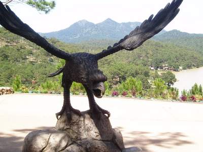 I discovered the true nature of the feux valley just in time and went another 100m up the road to the real thing. I'm not really sure what the source of this particular attraction was, but there were a slew of carnival rides, cartoon statues, and dried fruit vendors, and in the back somewhere, a valley of sorts.