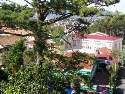 The street where my hotel was situated had the funny habit of sporadically disappearing off the face of the earth, and it never took me less than an hour to find it, but I did eventually get back and subsequently headed to the market for a collection of fake pork, beef, chicken and anchovies at one of the many vegetarian stalls. Dalat is one of those rare cities that is a few hundred kilometers from anywhere and happens to be next to a big hydroelectric plant; for this reason, the night sky is illuminated with dozens of neon signs and the skyline is dominated by a huge, glowing eiffel tower. From what I've seen of the nightlife so far, it seems to fall short of overwhelming; there is a lively shopping center where vendors scream out insanely low prices on piles of junk and great crowds of people rapidly shift from one to the next as they compete; since it is a college town, I'm sure the students are all going nuts somewhere, but, as usual, I didn't get invited to any crazy keggers.