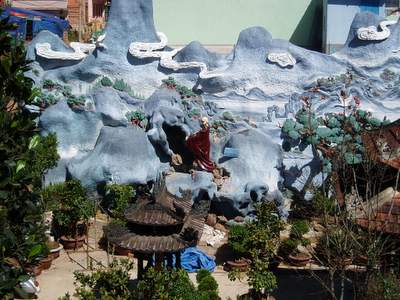 From the lake I powered up the hills to the north to arrive at "Love Valley"; actually I first stopped at "Dreaming Valley" which is a recently installed theme park designed to fool people searching for the other, more popular valley into buying an extra ticket. At this imposter valley I came across the worst con-job I am seen yet in my travels; I was rather disappointed as the Vietnamese are usually brilliant at this sort of thing and make you nearly certain that they believe what they're telling you to be true; it went something like this: ticket guy hands me the ticket for my bike and says "That will be 2000 dong," and I reply "But it says 1000 dong right here on the ticket!" and the ticket guy, thinking quickly, comes back with "Yes, but you see, I can only sell you two tickets - if you had two bikes it would... wait let me start over... you see, we don't have a ticket for bicycles, so I have to sell you 2 motorcycle...", by this time his friends were all laughing hysterically and I walked off to the park ticket office so he could have a few minutes to get his thoughts in order