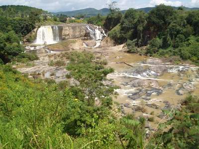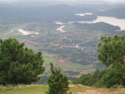 So I headed back west along a different road til I reached Gougah falls and followed the road up to Prenn Falls and Datanla Falls; it seems every waterfall in this region has been transformed into a grotesque tourist attraction packed with Vietnamese cowboys and Native American statuary. I somehow missed "Chicken Village" (a village where someone constructed a giant concrete chicken) but managed to eventually get to Langbian Mountain north of town for some incredible views.