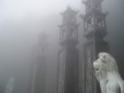 There was apparently a severe tropical storm headed for Vietnam and I was only staying upright by leaning all my weight into the wind - at one point a particularly strong gust actually picked up my bike and deposited me half a meter to one side. I decided that this was probably a bad day for the coast and headed for the hills. About 20km inland was Ba Na Hill Station - a national park which reportedly held an exceptionally scenic mountain summit. What they didn't bother to tell me at the ticket office was that the whole thing was under thick cloud cover, and after driving 16km of constant switchbacks, I found I was limited in the scenery I could see to that which I could physically touch; not inclined to roll down the side of the mountain, I drove back down and headed back east.