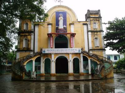 In the morning I stopped by the huge pink Danang cathedral which was filled far past capacity (with a few dozen people on stools outside) for the 5am Mass (the standard time for Vietnamese churches - would Catholicism exist in America if this were the only service offered?). I grabbed breakfast at a stand serving up purple porridge - I later discovered that this was one of many such stalls in the city which serves baby food to mothers with infants - nevertheless, it was tasty and had all the nutrients a growing boy needs.