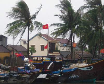 There wasn't much north-bound traffic on my road, which was useful as it made it much easier to navigate around the recently formed lakes, treefall and downed power lines. My speed topped out at about 5 km/hr since the wind was changing in intensity and direction every few seconds. Power was out in most areas, but occasionally a loudspeaker would blast instructions for the dazed people to follow as they wandered the flooded streets. The state of Danang was rapidly deteriorating and strong winds were toppling the foolhardy bikers who still tried to make it to some critical destination. I arrived at the store and found (to no great surprise) that I would not be refunded for the unused day of my rental.