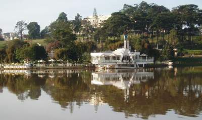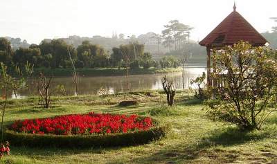 As darkness fell, we cleared the last of the arms of the storm and sped on into the night. For some reason we chose to stop to eat at a place with no power and I somehow managed to order cold bean sprouts and rice. We arrived at our destination at 4:30AM; fortunately the market was already in full swing and I was able to procure a host of cheap local specialties. I had earlier read about a 7km walk around the town lake, which had earlier seemed like a silly waste of time, but at 5 in the morning, I honestly couldn't think of a single better thing to do. Dalat seems to be a remarkably beautiful town with cool temperatures, lush evergreens and vibrant flowers.