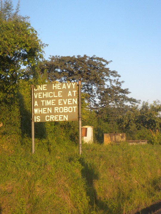 It was a quick drive to Kisane, the gateway to Chobe National Park. We would hear from several people down the road that this was the highlight of all of Southern Africa, but we couldn't enter with our motorbikes and had heard nothing up to that point to justify shelling out for a game drive. So our only real business in town was changing our pula before we crossed the border, since at that time we were not aware that pula was in fact accepted everywhere in Zimbabwe (and, incidentally, at a better rate than the actual exchange rate). The ultramodern Barclays Bank in the town center seemed like a safe place to change, but upon telling the teller how much pula we had to exchange, she randomly picked a number out of the air, which was about 30% off the actual rate, and refused to show us any sort of calculation that led to that result. I resolved to hold onto it and see how I could do with the black market.