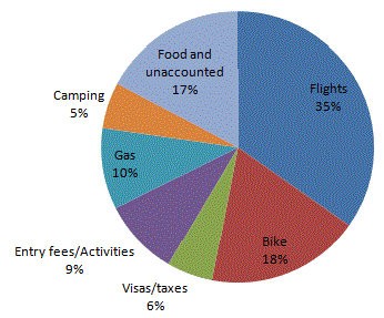 | Day | Campsite | Distance for day | Camping Fee | Notes/Other expenses | Country |