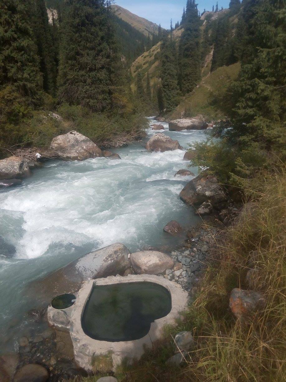 It is not hard to find a hot spring in the Kyrgyz valley of Altyn Arashan. Every guesthouse and yurt camp has access to at least one, and it's effortless to slap down 100 som and immediately procure a key to the nearest private shack, complete with tub, shower, changing area, and easy access to an icy cold stream. We found ourselves in just such a pool within an hour of coming off our 2-day trek. But what intrigued me far more than these was a seemingly misplaced pin in the OpenStreetMap data, a mile downriver from our camp, with no roads or trails leading to it, labeled simply "Hot Spring".