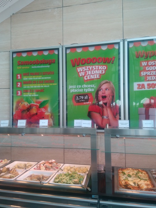 Meal at 2.9/100g buffet restaurant: 10.2 PLN