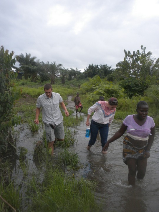 Our poda poda broke down 5 minutes out of town and we called up Caulker's guy who picked us up in his Peugeut compact. Since there were only four of us, and no one was sitting in the cup holder and straddling the stick, we were expected to pay for two additional tickets; our supervisors split the difference. Nick's supervisor taunted the driver for not driving fast enough and passing other cars – this on a road that was clearly not designed with 2WD in mind. I moved into Chris's house; he had left a weight bench, a kerosene stove, a GPS, 8 cans of hummus, toiletries, random books and plenty of other random stuff; it was a strange feeling taking over someone's life. Caulker took me out for lunch and we got cutting grass stew (a large bush rodent that looks a lot like an otter), and he subsequently ordered four rounds of beers. From there, we went down the street to his uncle's house who was turning 80 that day; in a few minutes, gallon jugs of bamboo wine arrived. We ate antelope stew and drank on his porch until 11 that night. Fortunately an NGO woman arrived and gave me an out, noting that I was probably tired from my long journey, and I was able to get home just before a torrential downpour which apparently held them captive on that veranda until 4 in the morning.