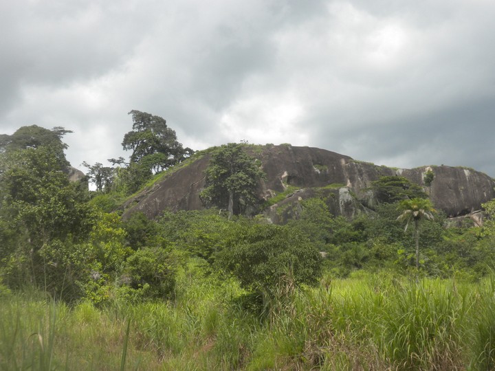 The average walking pace of a Sierra Leoneon is ludicrously slow, but Bob and his friend were actually very speedy hikers, and they were quite skilled at instantly choosing the right path at an unmarked fork. The trail took us through the rice paddies, and up and over a big rock, then continued through dense jungle to multiple small villages – each had an intricately woven vine gate at its entrance. We arrived at one woman's hut just in time for lunch, and she shared with us her family's bowl of boiled bananas and palm oil.