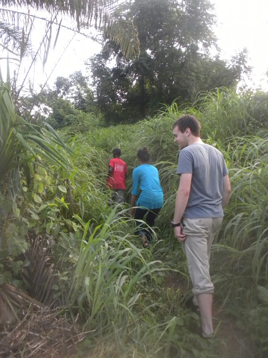 After school, we got an earlier start for the previously attempted bush walk, and this time crossed the final stream before Baka. We wanted to keep going but the host family members we had brought along insisted on turning around. When we initially resisted, they talked to some villagers in Mende and claimed that they had warned of bad men and a devil bush ahead.