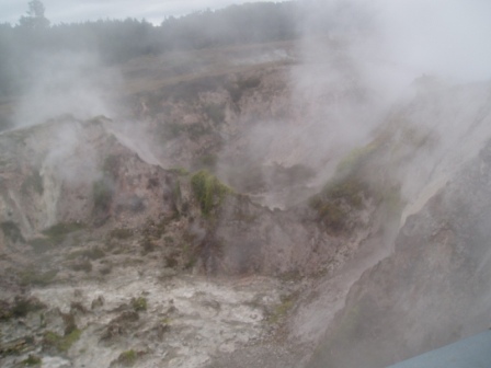 I went to the Redwoods forest where thousands of slightly confused Californian Redwoods grew to heights rivalling those in their native soil. From there, I raced to the Mauri Cultural Center to catch the midday concert which consisted of a bunch of scantily-clad people hitting the ground with sticks, flapping their tongues, and slapping their chests and butt-cheeks to catchy island tunes. In the same complex there was a "Kiwi Encounter" where a bird (not a fruit) supposedly lived; because of the animal's nocturnal nature, the room was completely dark and it was very difficult to say whether the furry outline moving about was really the rare, endangered bird, or just some imposturous beaver. Down the trail was a group of geysers; one was constantly erupting to a height of 3-7 meters, but the spotlight performance was one that erupted to 30 meters once or twice an hour; I never actually saw this or met anyone who had, and the staff seemed very reluctant to give any indication of the timeframe when it might next occur, so I suspect it was just a marketing gimmick. I ordered a hangi, which is a traditional dish put in a woven basked, wrapped in soil and buried in the earth with hot coals for 3-5 hours; somehow the microwaved version they served to me in a Styrofoam bowl after 5 minutes didn't really have the aura of authenticity I was looking for.
