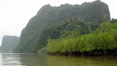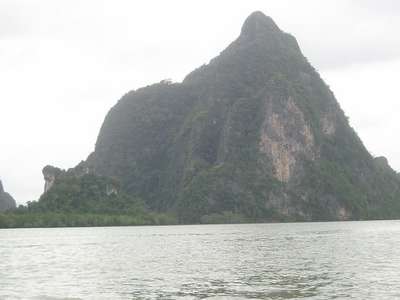 The next morning, I set off at the crack of dawn for the pier where I could supposedly arrange a boat trip to the bay. Unfortunately, the signage was at its usual standard and I ended up in some random fishing village rather than the tourist port. The locals were more than happy to rent me a boat and were quite insistent that no other tourists would arrive to share the costs (they didn't bother to mention why) so I ended up getting a private trip on a long-tailed boat for 700 baht – this would've been quite a decent deal (the going rate being 1800) had I actually had any desire to have my own boat. We visited a Muslim fishing village where houses on stilts backed up against a sheer limestone wall; it seemed a bit over-touristed as the main alley was lined solely with souvenir shops and seafood restaurants; my driver was terrified of the prospect of going deeper into the shacks to see the mosque and other more authentic attractions. Next we drove through a cave and proceeded on to the famous island featured in “Man with the Golden Gun" before going by a rock shaped like a poodle and heading back to port. I had got them to agree to a 4-hour tour and although there were plenty of islands to fill this time, I only actually knew the name of two of them; I was a bit afraid that the driver would simply go extra slow to kill the time, but he didn't seem particularly concerned with such technicalities as honoring the agreement, so we finished in an hour and a half; the people I had given my money to were mysteriously absent upon my return.