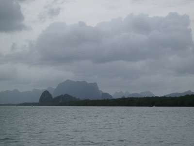 The next stop was Ao Nang Beach that served as the main faraang district of the area with plentiful tour shops and overpriced western food. With an hour of daylight left, I headed north towards Pha-Nga. The scenery on the way up was fairly incredible with dramatic limestone cliffs randomly popping out of the level earth in all directions; unfortunately, the high winds were nearly toppling me at every corner, so I was slowed to a crawl and lost the latter half of the landscape to darkness.