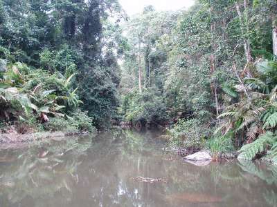 Venturing through the jungle, I heard the screams of a few dozen gibbons, as well as the sounds of hornbills and various other birds, and the occasional gurgling of some large carnivore's digestive tract. I never actually saw much of anything besides a small green snake and something resembling a bush baby; a few hundred spiders crawled across my head at one time or another, and plenty of malarial mosquitoes made their presence known.