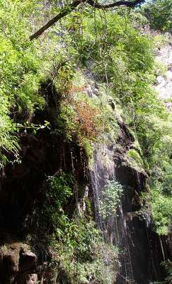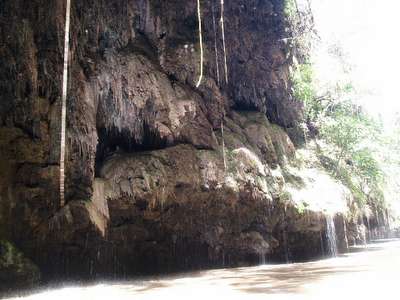 The boat started out at 8 with myself, two Swiss woman, an English(/Thai/Burmese/Karen/Hindi)-speaking guide and two paddlers – this apparently wasn't one of those rafting trips where the tourists are actually called upon to exert themselves. We rafted for 3 hours, passing many caves and waterfalls and seeing many native fruits, a few monkeys and some birds-of-paradise with full plumage. Our guide pointed out all the traditional uses for the flora along the way, and even showed us a type of rock that when ground into a drink, would turn a gay man straight in 30 days (he assured us several times that he was quite serious about this).