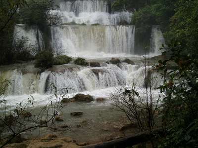 Since the guides planned to wait til morning to see the falls, I had to trek there myself and snap a few hundred pictures in the dwindling daylight hours. In the dry season, you can apparently climb up to an upper level of the falls and jump a dozen meters into one of the pools, but on this particular day, it was somehow unsafe. I returned to camp at just the right time such that all the work was already done for me – my tent was set up and dinner was set on the table. Another group of westerners had shown up – this was made up of 14 Belgians who had booked a 2-week “adventure" trip back in their own country – they used local transport and all the same tour companies, but every detail of their travels was planned in advance. They were led by a man who was on his first trip with the Bangkok-based company – he had never traveled in Thailand, couldn't speak a word of Thai, and didn't seem to have any understanding for the trip's itinerary – his sole job was to translate the English spoken by the Thai guides into Belgium or clearer English; he would spend 9 months doing 15 different tours around the entire country before being relocated to a similar job in a new country where he would be equally oblivious – in short, he had my dream job.