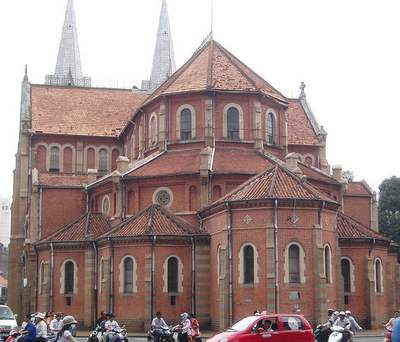 There had been a promise of a short English and/or French homily at Notre Dame cathedral, but the Saturday Mass was as opaque as ever; afterwards, everyone just stool around and stared at the Mary statue in front of the church while nearby vendors sold baloons and dried squid. The main commercial district was hopping - among local teenagers, the big weekend activity seems to be dressing in the latest fashions and cruising around in circles on motorbikes (this sounds dumb but I'm certain that, if our parents had let us get motorbikes, we'd of done the exact same thing); since there's somewhere around half a million kids indulging in this in around the same place at around the same time, the result is one huge mass of slow-moving bikes forming an impenetrable river of man and machine along the main drag.
