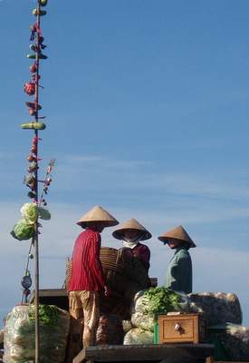 The next morning we took a boat to a "Cham minority" village, a .35% segment of the town's population that was Muslim and learned Arabic in school - in a manner identical to those in North Africa, the children went through the progression of begging from pen to chewing gum to money (must be a religious thing). On the boatride back, we stopped to view a floating fish farm; these are very basic houses built over fish cages that hold around 100,000 fish - apparently there's no quicker way to get rich in the Delta than put thousands of fish under your house - there is however, a problem of getting splashed through the floorboards and I'm guessing the situation demands more than a few room deoderizers. The rest of the day was spent transferring from one bus to another, as we combined with several other tours going in various directions, until we arrived at Ho Chi Minh around 5. The evening went without much event except for running into the Americans which I hadn't seen since the opposite end of the country.