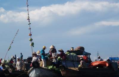 Chau Duc turned out to be a pleasant riverside town with a huge central market and tons of good food; as seems to be the norm in Vietnamese border towns, no one speaks a bit of English, but everyone knows how to handle foreigners - in 90% of cases, when I asked the price for something, the vendor simply silently pulled out the biggest bill he/she had, as even though I'd made the inquiry in Vietnamese, I couldn't possibly understand a numeric response or have any idea of what something should cost.