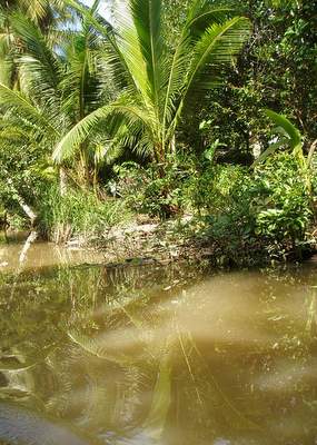 After our two-hour "scenic drive" down the mostly featureless highway, we arrived in the town of Mytho. We took a motor boat on a trip through the palm forests to see a number of villages that had been engineered by the tour companies to each sell us a different specialty (allegedly, a family tradition for a hundred years); the first was mass-produced coconut candy and rice wine followed that and then the ever-popular coconut bobble-heads. The prices were always hyper-inflated and we were always left on the island for ong enough that we became sufficiently hungry or bored to buy something. At least one of the brochures had mentioned "a chance to bike-ride around each of the islands;" as it turned out, however, this "chance" was significantly diminished if you were unwilling to rip-off the locals' bikes.