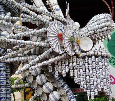When I arrived at Dam Sen Park, I was shocked to see that they wanted me to buy a ticket just to walk through, and furthermore, at $1, it was the most expensive entrance fee in the city. As if this weren't exorbitant enough, there were actually separate fees for nearly every one of the park's attractions. One thing that was free, however - and this was just about the highlight of my week - was an extensive collection of intricate beasts built solely from spoons and other kitchenware. Other than this highly imaginative set, the park also offered an ice palace which was a good 50% more expensive than the park itself; here, you donned a coat and walked into a refrigerated room full of sculptures that were supposed to resemble famous architectural works throughout the world - these were designed without any skill, style, or reverence for historical accuracy, but it was a great way to cool off on a hot summer day.
