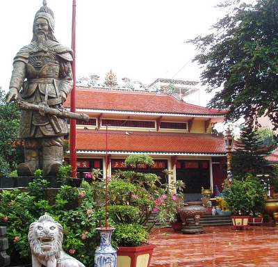 A tropical downpour had ensued while I was in the mall; rain has a fascinating effect in Vietnamese cities - every vendor, regardless of what they were originally selling, instantly goes into the business of poncho dispersal; it's as if they have a button that deploys a ring of rain jackets around their stand the instant the first drop falls. Naturally the rain stopped the instant I shelled out the 2000 dong for a coat, and I was able to see a few more pagodas as well as the soup shop used by VietCong spies.