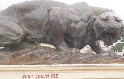 Walking to the next attraction, some guy started following me who was in training to become a call center operator and was trying his best to acquire my accent; he had a good command of the language but wanted to learn the informal phrases such as our expression for "to pass urine". In Lumbini Park, I took a boat ride to one of the world's biggest Buddha statues. From the island I spotted the Imax theatre which was showing Harry Potter that evening (yup, India gets it before we do); I had asked many locals about how tough it was to get tickets and they all claimed that I only needed to show up half an hour before - they were clearly not familiar with the magnitude of the HP phenomenon, however, as all the day's remaining shows were sold out.