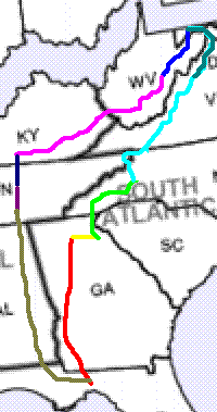 We followed the exceedingly scenic highway 60 west towards the Kentucky border. The towns that punctuated the road looked for all the world like New England fishing villages that had been picked up and moved to the mountains. As we drove along the interstate, we noticed that every exit had a fast food restaurant we had never before encountered; the constant signs for Tudor's Biscuit World taunted us, as we were quite sure that this seemingly prolific establishment would cease to exist the moment we reached the border. We got off at the next exit and hunted it down, but found, to our profound disappointment, that it was not open for dinner. Our craving for biscuits would thus go unsatisfied.