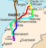 Fed up with getting chased around by "students" (who were "certainly not guides or hustlers but just wanted to practice their English and you could pay them or not, it didn't matter"), I left the old city to try to find the bus station. Somehow my interpretation of the map led me to be perched atop a mud spire overlooking the station a hundred feet below, but a goat path led me down and I was soon on the next bus bound for Meknes.