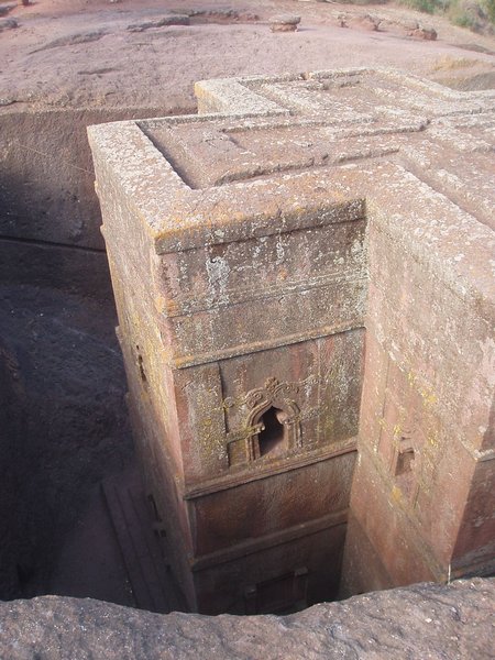 We were accustomed to getting up at 4 and were therefore quite ready to explore the famed rock churches at the crack of dawn. There were no tourists about at this time, only active services, locked doors, and an utter lack of explanatory signs. We soon found that it was quite difficult to see any of the attractions appropriately, despite having parted with a $20 admission fee. We would try to enter a structure or cross a bridge spanning a 20m-deep chasm and someone would yell at us in Amharic and make incomprehensible hand gestures; we eventually gave up on the first group and headed for the most famous of the town's churches, the cross-shaped Bet Giorgis.
