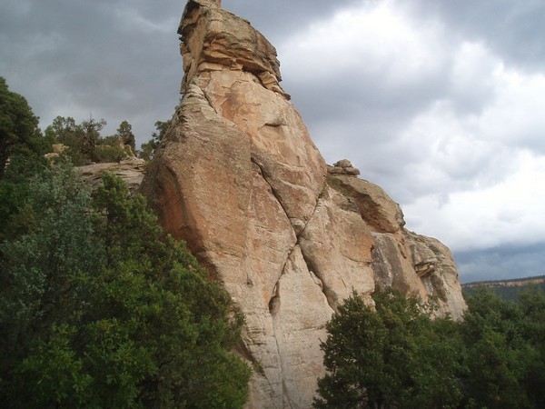 I woke up and drove us to Garden of the Gods at dawn; we were one of the first cars in the lot, and Scott and I got an hour of hiking in on the park's empty trails while the others slept. I spotted no fewer than twenty rabbits hopping around the towering rock formations, as well as deer, chipmunks, and other assorted critters. We biked around the park's scenic, rolling one-way roads and along several challenging MTB trails. The main attraction of the place was the excellent assortment of sport and top-roping routes that ran up the faces of the walls and spires, so after procuring a climbing permit, we set about rigging our rope. The first one we chose was over my head, and after a few hours of trying to lead it (leading = really scary version of climbing necessary for setting up a sport route - you can fall quite far if you pick the wrong time), we convinced a passing expert to set up our rope for us. We spent the remainder of the evening climbing the two spires at the center of the tourist track, which were encircled by a sidewalk and saw several hundred passers-by an hour. Climbing these was a bit like being one of the monkeys on Monkey Island at the zoo; visitors gathered around and pointed and marveled at the mysterious creatures that effortlessly scrambled up the pinnacles; children made funny faces at us to try to elicit some response.