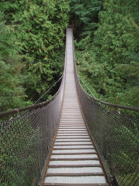 A bus met the seabus and carried me the rest of the way to Lynn Canyon Park. Here, it's possible to pass between two raging waterfalls on a narrow suspension bridge which hangs precariously over a high canyon. From the bridge, trails radiate out in all directions and reach as far as Horseshoe Cove some 35km away; I took a short one up along the creek to a 30ft aquamarine plunge pool; sadly it was a little too chilly at the time to explore its depths. I then took the creek all the way down to the south end of the park where I found one of the city's two MEC stores. Mountain Equipment Co-op is Canada's answer to REI and is probably the closest place to the US where you can buy cheap, good quality daypacks - I got two.