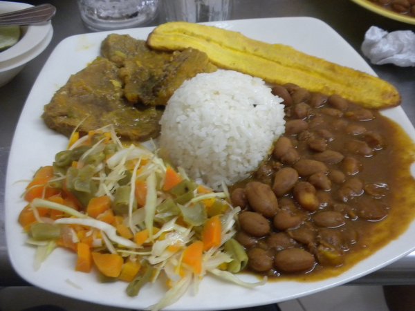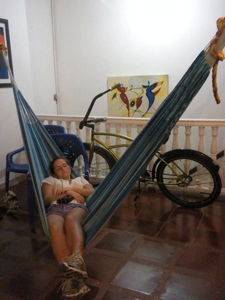 We found the rest of the group hanging out and drinking in the lobby. They had finished up at the fortress and spent most of the rest of the day bar-hopping, drinking prodigious amounts of alcohol, getting to know other travelers and locals, and generally having a grand old time. It was raining quite hard, so we all went to two different restaurants within fifty feet of our hostel. The menu of the day cost around 8000 and included soup, rice, beans, plantains, salad, lemonade, and the meat of choice. Much of the group was planning to go clubbing around 11 and was hanging out in the lobby until then; I tried my best to be social, but passed out around 10.