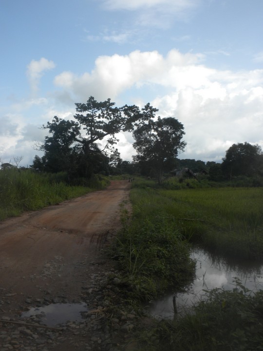 Our poda poda broke down 5 minutes out of town and we called up Caulker's guy who picked us up in his Peugeut compact. Since there were only four of us, and no one was sitting in the cup holder and straddling the stick, we were expected to pay for two additional tickets; our supervisors split the difference. Nick's supervisor taunted the driver for not driving fast enough and passing other cars – this on a road that was clearly not designed with 2WD in mind. I moved into Chris's house; he had left a weight bench, a kerosene stove, a GPS, 8 cans of hummus, toiletries, random books and plenty of other random stuff; it was a strange feeling taking over someone's life. Caulker took me out for lunch and we got cutting grass stew (a large bush rodent that looks a lot like an otter), and he subsequently ordered four rounds of beers. From there, we went down the street to his uncle's house who was turning 80 that day; in a few minutes, gallon jugs of bamboo wine arrived. We ate antelope stew and drank on his porch until 11 that night. Fortunately an NGO woman arrived and gave me an out, noting that I was probably tired from my long journey, and I was able to get home just before a torrential downpour which apparently held them captive on that veranda until 4 in the morning.
