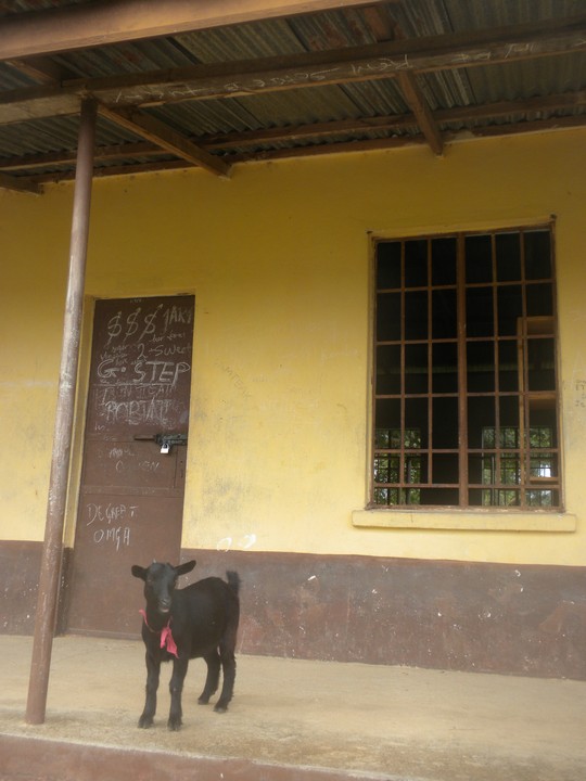 We made another trip into Koidu – my principal has a 4wd jeep from the 90s, but he doesn't drive stick, so he is always recruiting friends to take him drinking. Navigating through the streets of downtown Koidu is more fun than most offroading tracks – giant boulders, ravines, and pits are scattered throughout – how any low clearance car survives here is a mystery. We stopped by a bar and he picked up 'road beers', including one for the driver (I was not driving at the time). We returned to the Judge's house for a really delicious goat and cassava leaf feast. A random gang of gourd-shaking minstrels showed up and performed for several hours – their incessant rattling and piercing songs joined the whir of the generator and the Celine Dion CD blasting from the living room. While in the States, the ultimate goal of wealth is typically to provide peace and quiet, in Salone, noise is a status symbol.