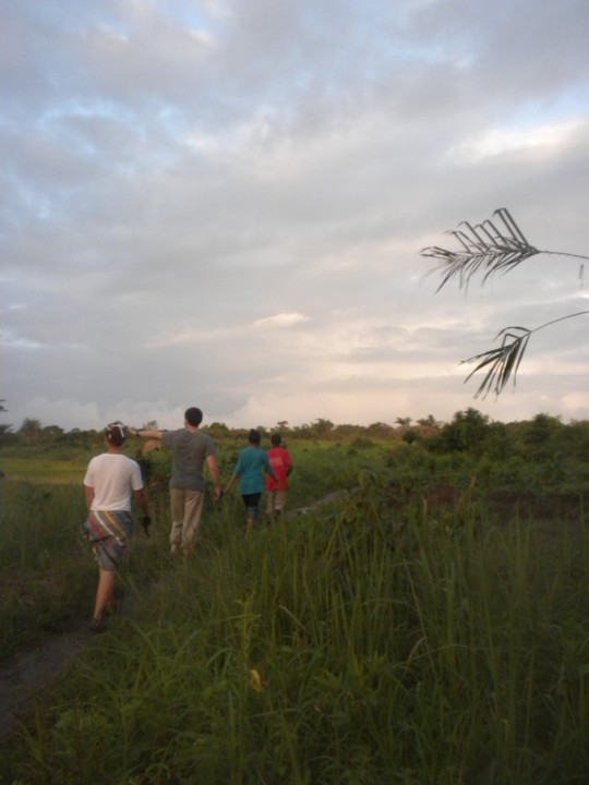 Obama gave us the Krio assignment of going to a tailor shop and getting the names of twenty different styles. The tailor we found was able to name two. I led an after school bush walk towards the village of Baka, but by the time I had actually assembled everyone, we had less than an hour of daylight and were forced to stop short. While I was out, Daryn stopped by to talk to my family about my progress brooking, cooking, and speaking Krio.
